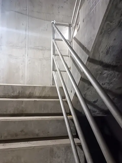 また、洞道は地中の非常に深い位置に作られることが多いために、昇降設備も非常に重要性の高い設備といえます。弊社は階段、梯子、鋼製フロアー、手摺などをはじめとする昇降設備はもちろん、入り口から洞道内までのほとんどすべての工事に関わっています。