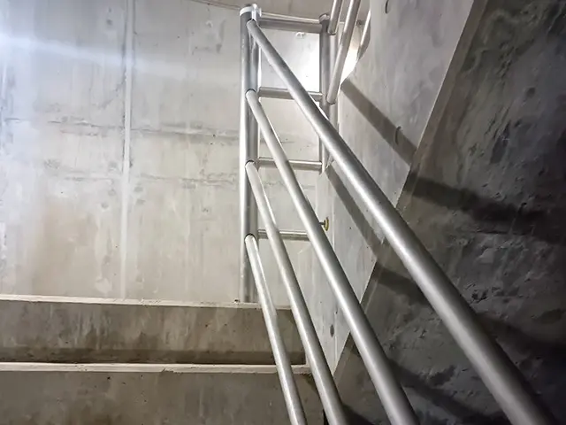 また、洞道は地中の非常に深い位置に作られることが多いために、昇降設備も非常に重要性の高い設備といえます。弊社は階段、梯子、鋼製フロアー、手摺などをはじめとする昇降設備はもちろん、入り口から洞道内までのほとんどすべての工事に関わっています。